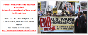 2018/11/09-11 Washington, DCArmistice Day: Conference, concert and peace march No to war - no to NATO Network Posted on November 7, 2018 by kristineNovember 30, 2018