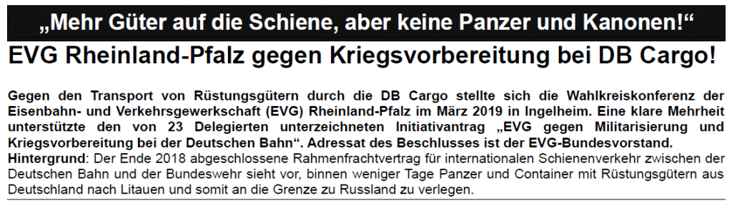 Bereits im Juni 2019 EVG gegen Bahn-Bundeswehr-Vertrag