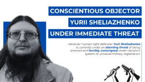 The undersigned organizations express serious concern regarding the continued persecution of Ukrainian human rights defender Yurii Sheliazhenko, a conscientious objector to military service. He is currently under an alarming threat of being arrested and forcibly conscripted under Ukraine’s system of universal military registration, which is enforced through coercive measures including arbitrary detentions and forced transfers to conscription offices. Such practices effectively compel conscientious objectors to act against their beliefs and directly violate Article 18(2) of the ICCPR, which prohibits coercion impairing freedom of thought, conscience and religion.