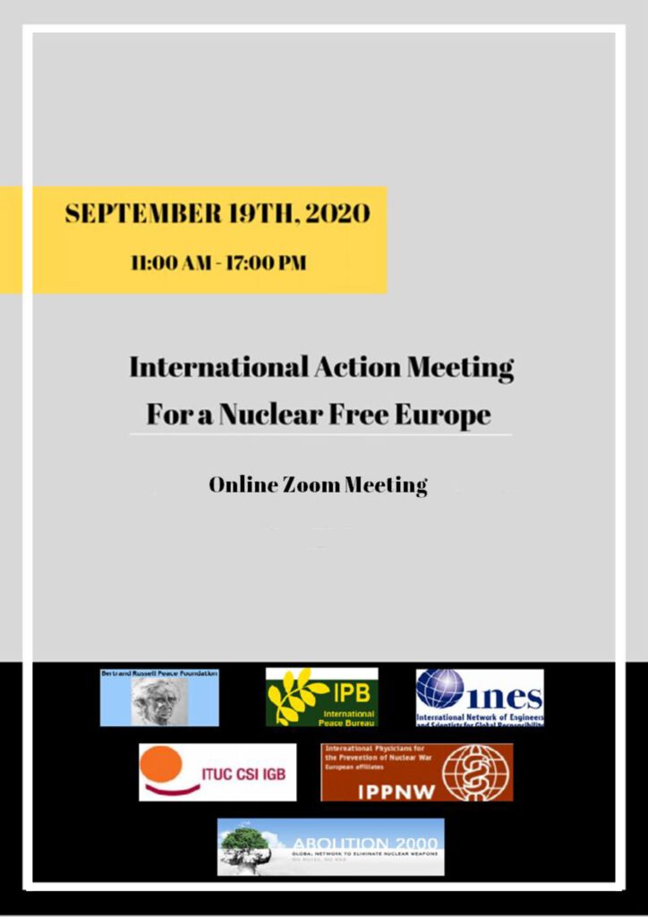 On the 75th anniversary of the atomic bombings of Hiroshima and Nagasaki, a new campaign is being launched to make Europe a Nuclear Weapons Free Zone. The campaign is being initiated by 8 campaigning organisations: the Bertrand Russell Peace Foundation; Church and Peace; the International Network of Engineers and Scientists for Global Responsibility (INES); the International Peace Bureau (IPB); the International Trade Union Confederation (ITUC); the European section of the International Physicians for the Prevention of Nuclear War (IPPNW); Pax … Continue reading →